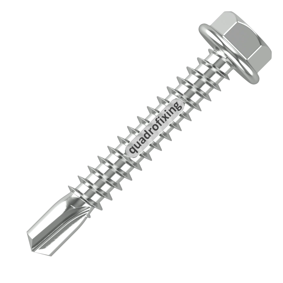Skrutky majú šesťhrannú hlavu s integrovanou prírubou, ktorá zabezpečuje rovnomerný prenos prítlaku a zároveň chráni povrch materiálu pred poškodením. Vďaka samovrtnej špičke typ K (podobne ako DIN 7504) sú vhodné aj na skrutkovanie do ocele.