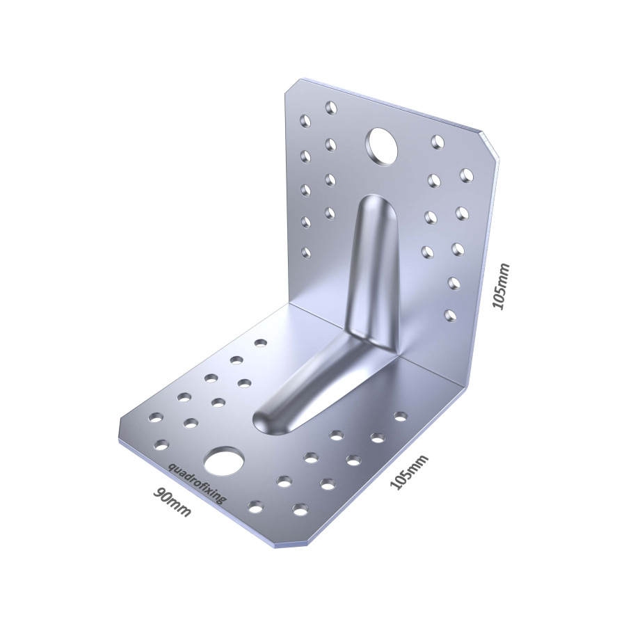 Pevný oceľový uholník určený na spájanie drevených konštrukcií v pravom uhle. Prelisované vystuženie zvyšuje pevnosť spoja a prispieva k vyššej stabilite celej konštrukcie.